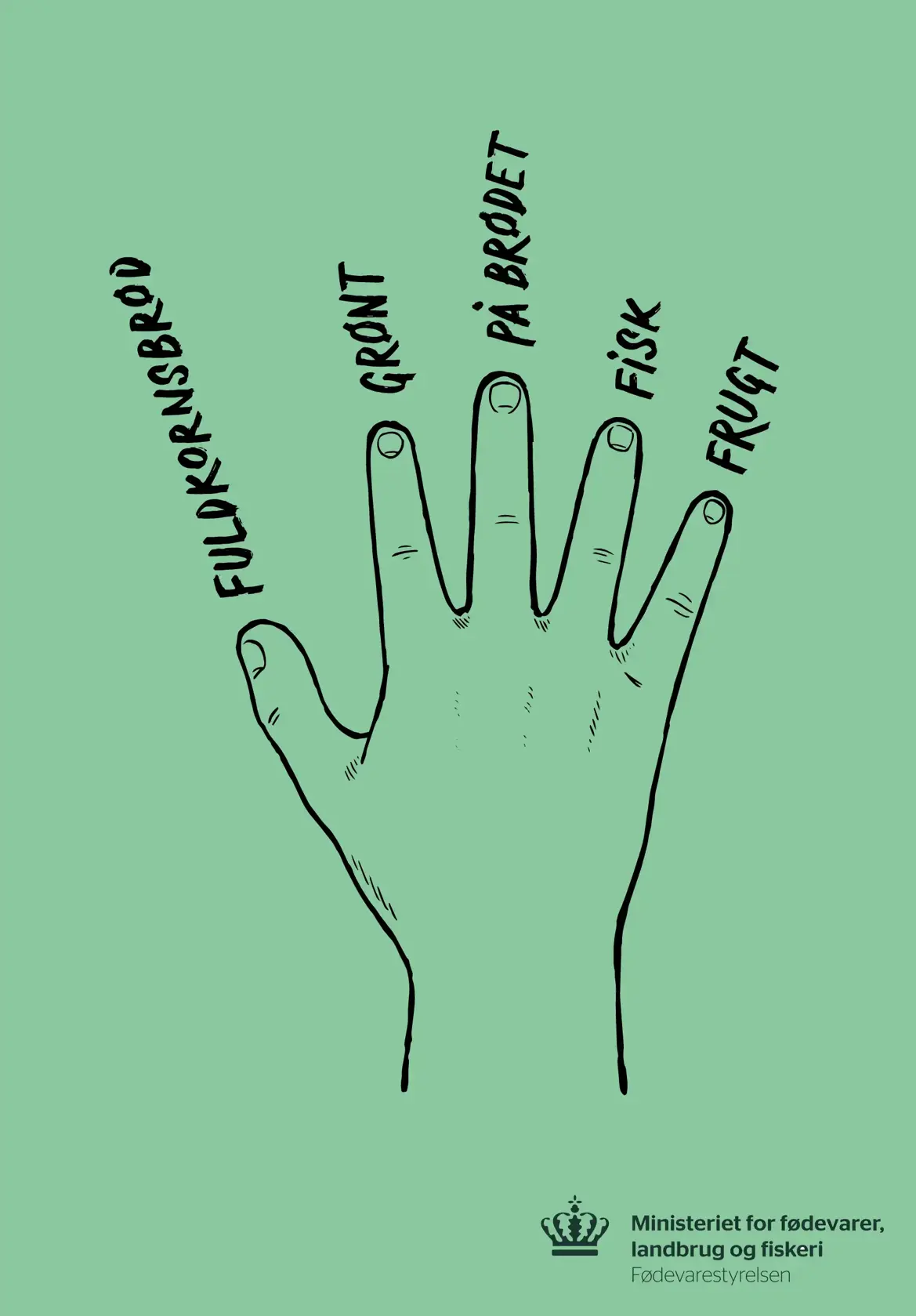 Brug blot madpakkehåndens fem fingre til at huske, hvad der er godt at få med i en sund og klimavenlig madpakke: