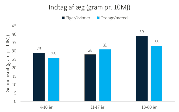 Det svarer til, at børn spiser omtrent et kvart æg om dagen, unge cirka en tredjedel, og voksne knap et halvt æg om dagen.