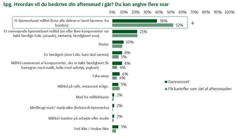Desuden fortæller flertallet af danskerne, at retter med kartofler, i højere grad end andre retter, anses som værende et ”hjemmelavet måltid fra bunden”.