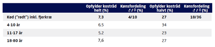 Kilde: DTU Fødevareinstituttet - Danskernes Kostvaner 2021-2024, tabel 10.2