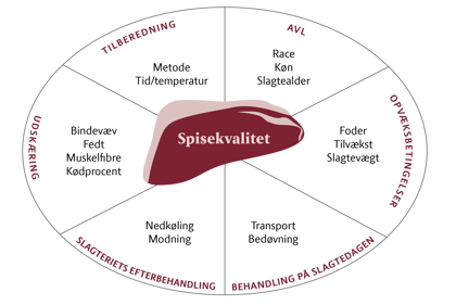 Figuren herunder viser de faktorer, der påvirker spisekvalitet og smag af kødet: