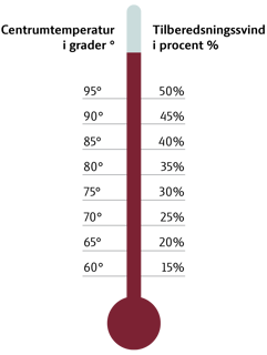 Centrumtemperaturen er afgørende for kødets mørhed, saftighed, smag og farve samt for tilberedningssvindet. Som det ses af figuren, følger svindet centrumtemperaturen så jo højere centrumtemperatur jo højere svind. Men tilberedningen skal stadig tilpasses den konkrete udskærings indhold af bindevæv, fedt og ben for at opnå den bedste spisekvalitet.